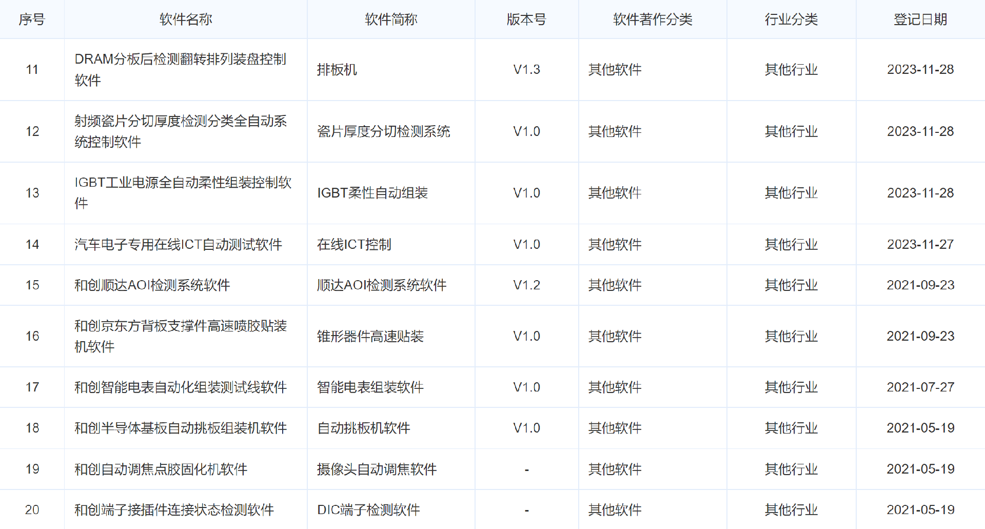 和创电子自动化知识产权列表
