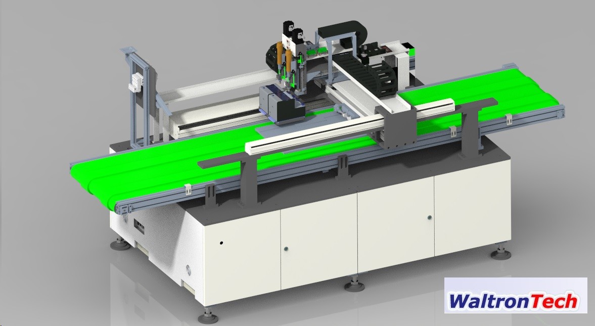 设备是插入现有流水线安装,不修改流水线产品的运动,产品不停顿在流水线运动,使用工厂原有的流水线;